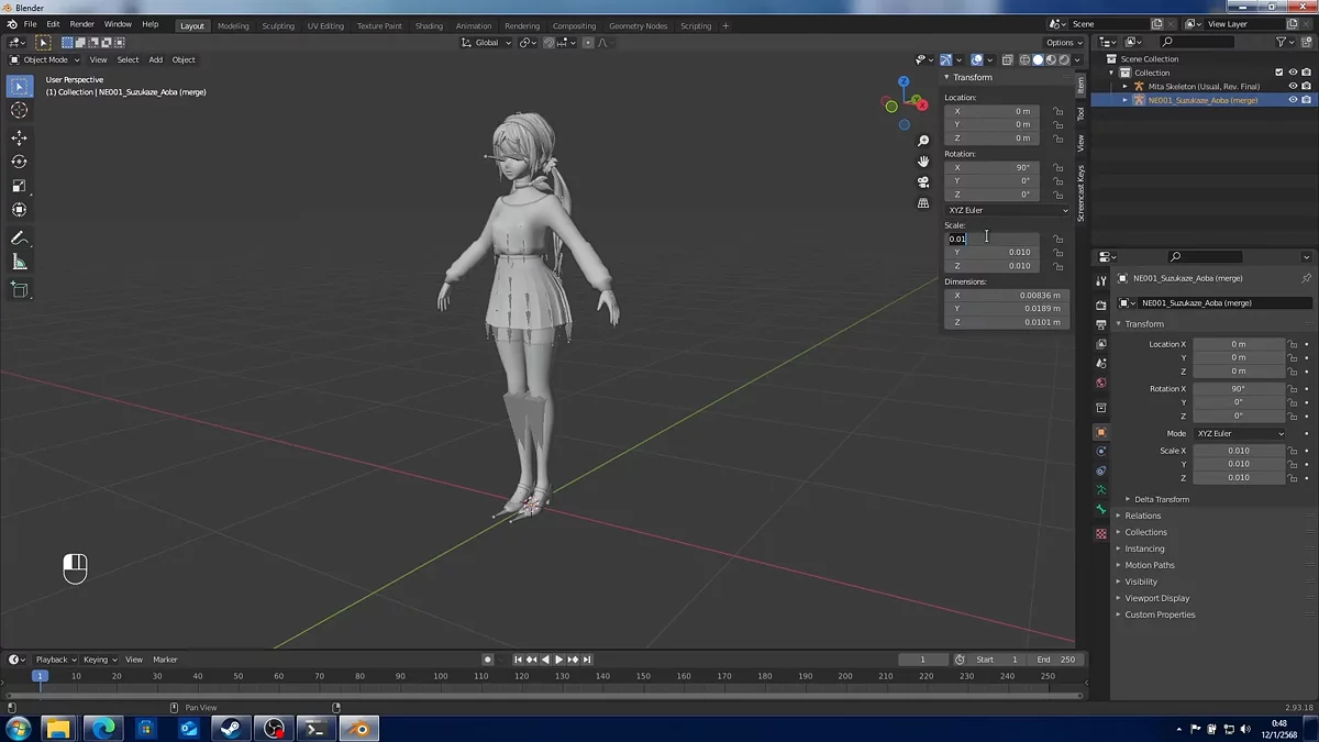 Jika Anda ingin sepenuhnya mengembangkan kostum Anda sendiri, Anda akan memerlukan kemampuan untuk menggunakan Blender atau salah satu analognya, serta pengetahuan di bidang pemodelan. Template Mita dapat diunduh dari berbagai situs atau diperoleh dari file game. Misalnya, Anda dapat mengunduhnya menggunakan mod ini yang diposting di situs web kami.