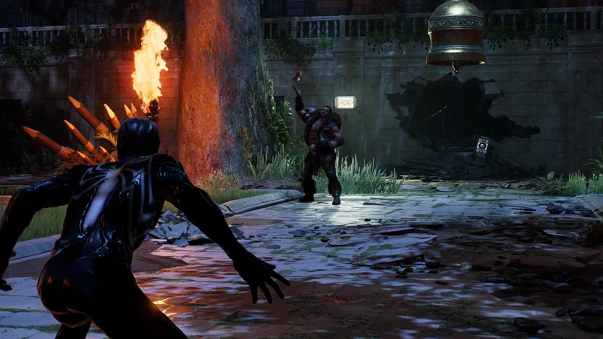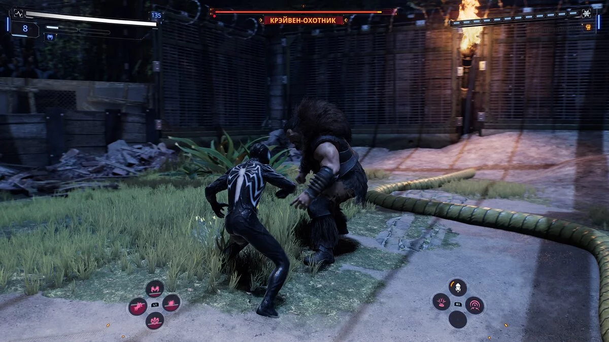 Tembakan jaring akan melumpuhkannya selama beberapa detik, memberi Anda keuntungan. Gadget hampir tidak berguna, sementara kemampuan super dapat memberikan kerusakan yang signifikan. Ketika bos melempar bom — lari ke depan. Ini adalah cara termudah untuk menghindari kerusakan. Setelah melempar bom asap, hindari segera, karena sebuah tombak akan dilemparkan kepada Anda. Juga, perhatikan barang-barang yang berserakan di sekitar arena. Mereka dapat digunakan untuk memberikan kerusakan tambahan kepada Kraven. Jangan lupa untuk melakukan finisher ketika kesempatan muncul.