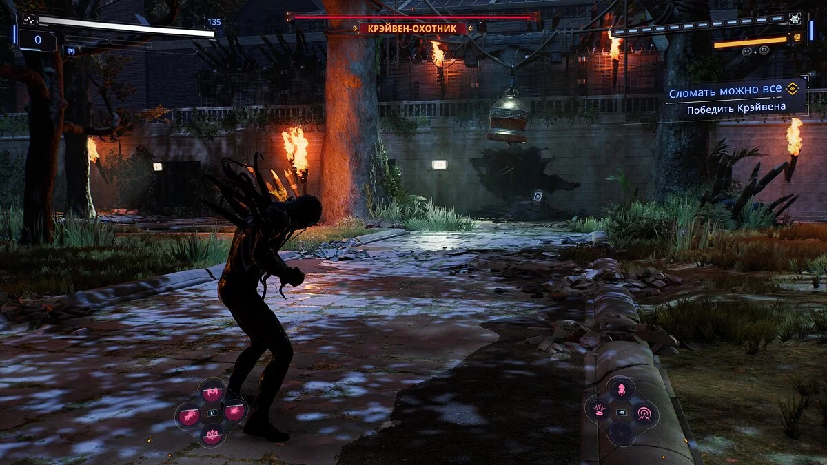 Setelah pertarungan kecil dengan lawan biasa, Anda akan menghadapi pertempuran bos. Serangan biasa Kraven dapat diparried, setelah itu Anda akan memiliki kesempatan untuk melakukan serangkaian serangan sederhana.
