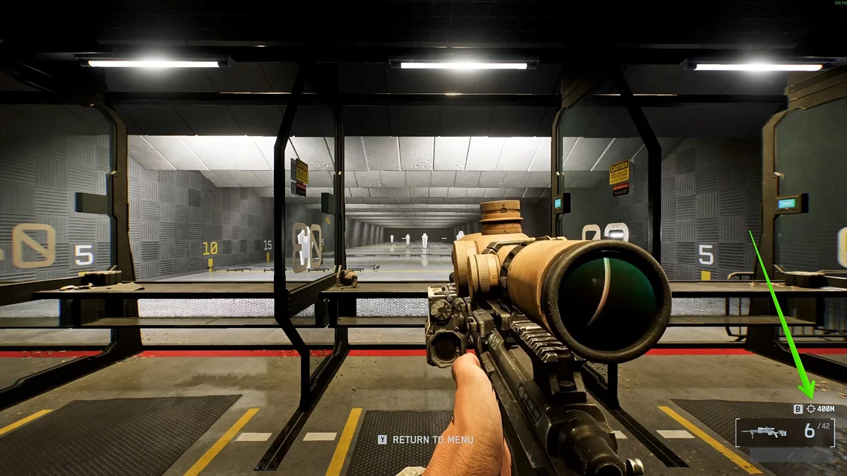 Saat membawa senapan sniper, sebuah tombol (default B) sekarang ditampilkan di sudut kanan bawah di atas penghitung amunisi, yang mengaktifkan range finder, bersama dengan simbol reticle dan jarak yang saat ini diatur oleh perangkat.