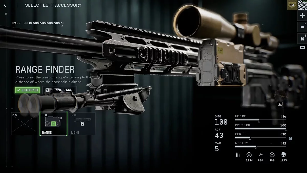 Pergi ke bagian senjata utama dan pilih senapan sniper M2010 ESR. Temukan modifikasi Jarak dan pasang untuk 15 poin peningkatan. Range finder hanya dapat digunakan bersama dengan bidikan optik dengan pembesaran minimum 2x atau lebih tinggi.