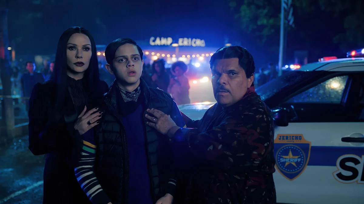 Namun, dia tidak tetap tidak sadar lama—hanya cukup waktu untuk bertemu dengan “pemandu” barunya. Dalam lore acara ini, inilah yang mereka sebut sebagai roh pelindung Wednesday, yang membantunya dengan kemampuan psikisnya. Jika sebelumnya itu adalah nenek moyang keluarga Addams, sekarang tidak lain adalah mantan kepala sekolah Nevermore—Larissa Weems. Solusi ini tampak cukup klise tetapi tidak buruk, karena karakter Gwendoline Christie ternyata sangat khas dan mudah diingat, meskipun dia jelas tidak mendapatkan cukup waktu tayang di musim pertama. Peran wanita yang eksentrik dan sarkastik lebih cocok untuk aktris ini dibandingkan dengan fantasi Lucifer tanpa gender dalam “Sandman” yang terbaru.