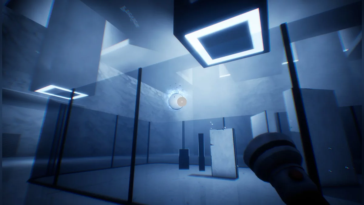 Setelah itu, kami diperlihatkan apa yang terjadi di dalam permainan itu sendiri. Ketika poligon diterangi oleh senter, ia berubah menjadi kubus dan jatuh ke lantai. Setelah itu, Anda bisa menangkapnya dengan sinar dan memindahkannya ke titik yang diinginkan. Sesuatu yang mirip terjadi di Half-Life 2, ketika kami menyeret objek dengan senjata gravitasi. Tetapi jika Anda menerangi gambar yang sama dari sudut yang berbeda, Anda tidak mendapatkan kubus, tetapi parallelepiped. Segitiga, seperti yang diharapkan, menjadi piramida, dan lingkaran menjadi bola. Di awal, Anda hanya perlu memindahkan mereka ke lubang yang sesuai, seperti dalam permainan edukasi untuk anak-anak kecil.