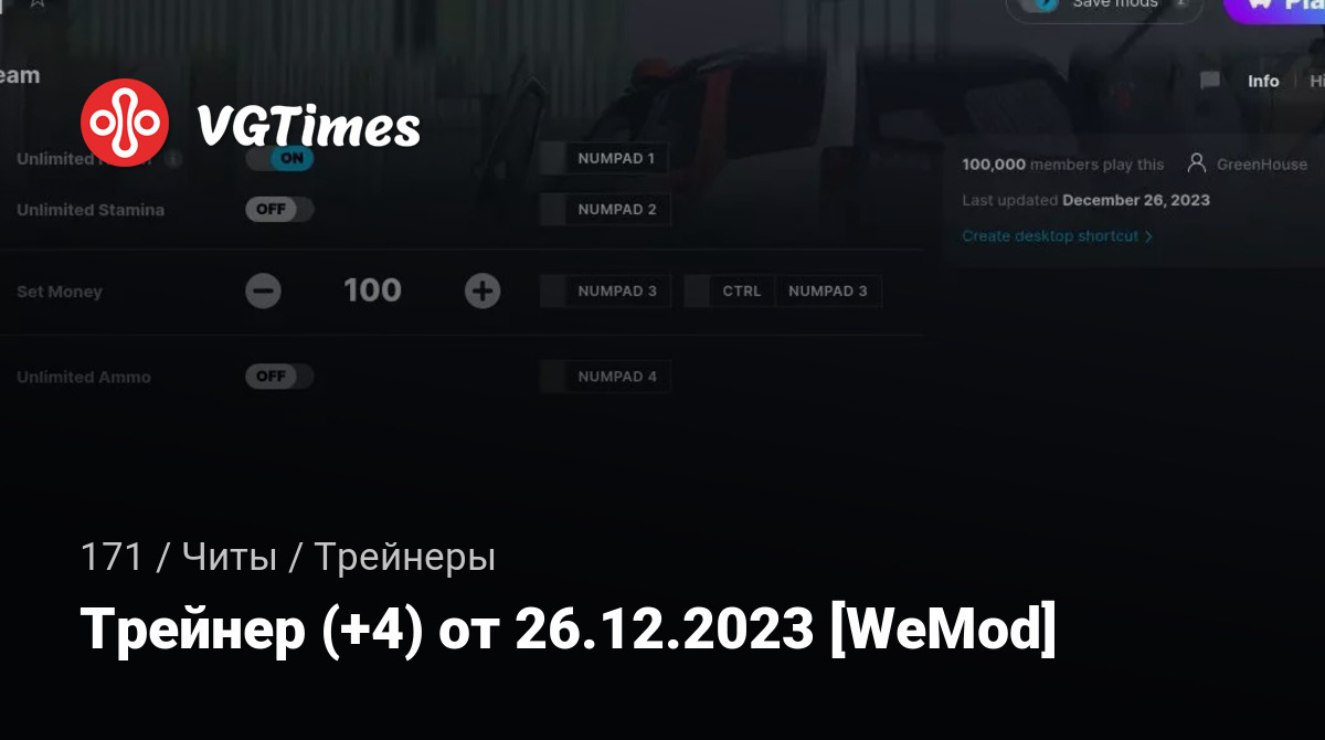 Для использования трейнера необходима установка системы WeMod (требуется онлайн подключение).