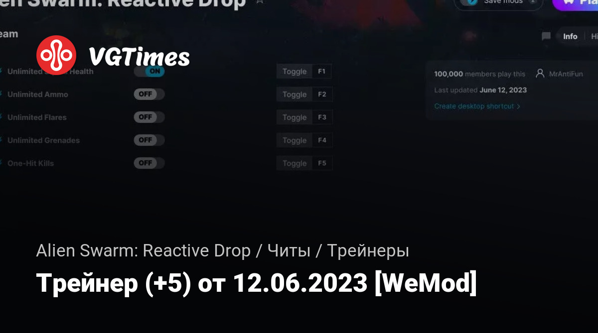 • Alien Swarm: Reactive Drop — Трейнер (+5) от 12.06.2023 [WeMod]