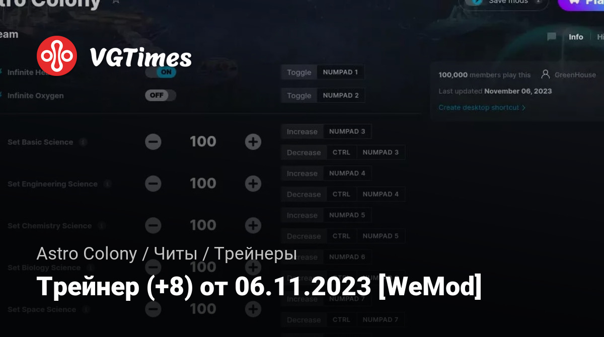 Трейнер (+8) от 06.11.2023 [WeMod]