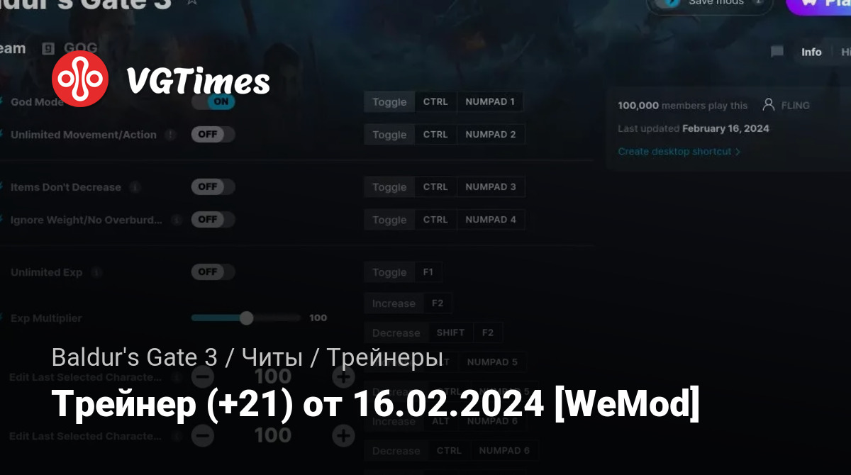 Трейнер (+21) от 16.02.2024 [WeMod]