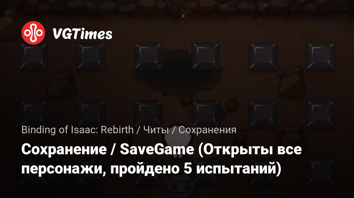 Permainan Binding of Isaac: Rebirth Berkas Simpan Сохранение / SaveGame (Открыты все персонажи, пройдено 5 испытаний)