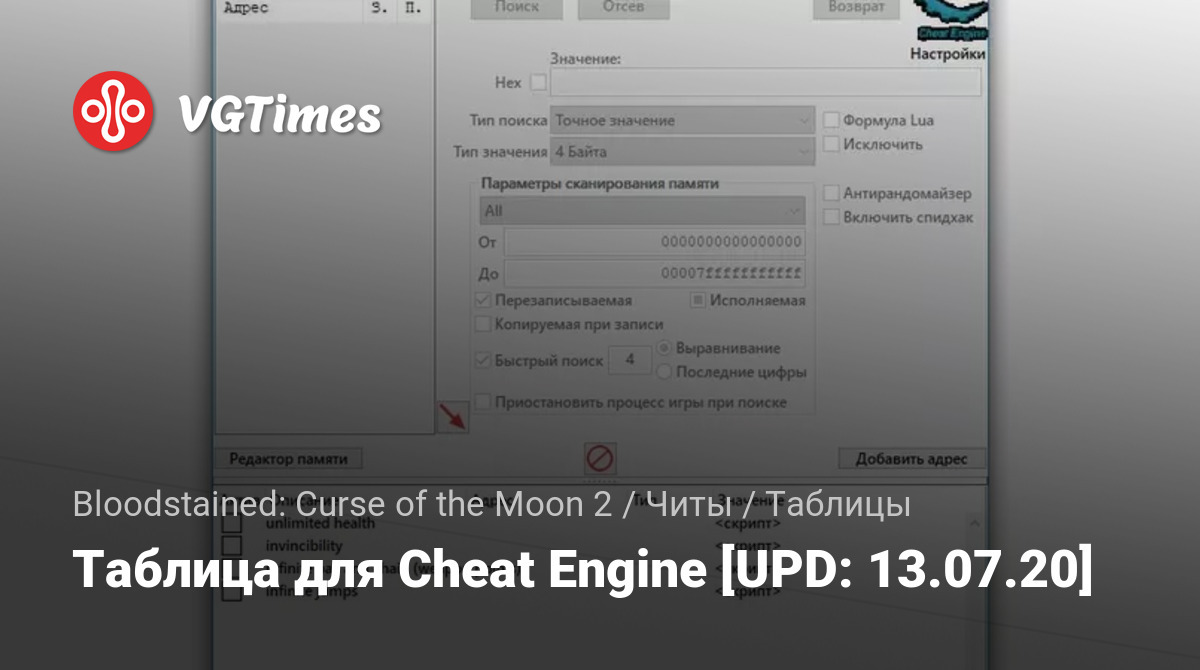 Таблица для Cheat Engine [UPD: 13.07.20]