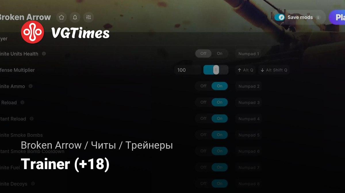 - Infinite Ammo — Бесконечные боеприпасы;