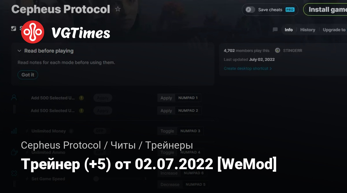 Для использования трейнера необходима установка системы WeMod (требуется онлайн подключение).
