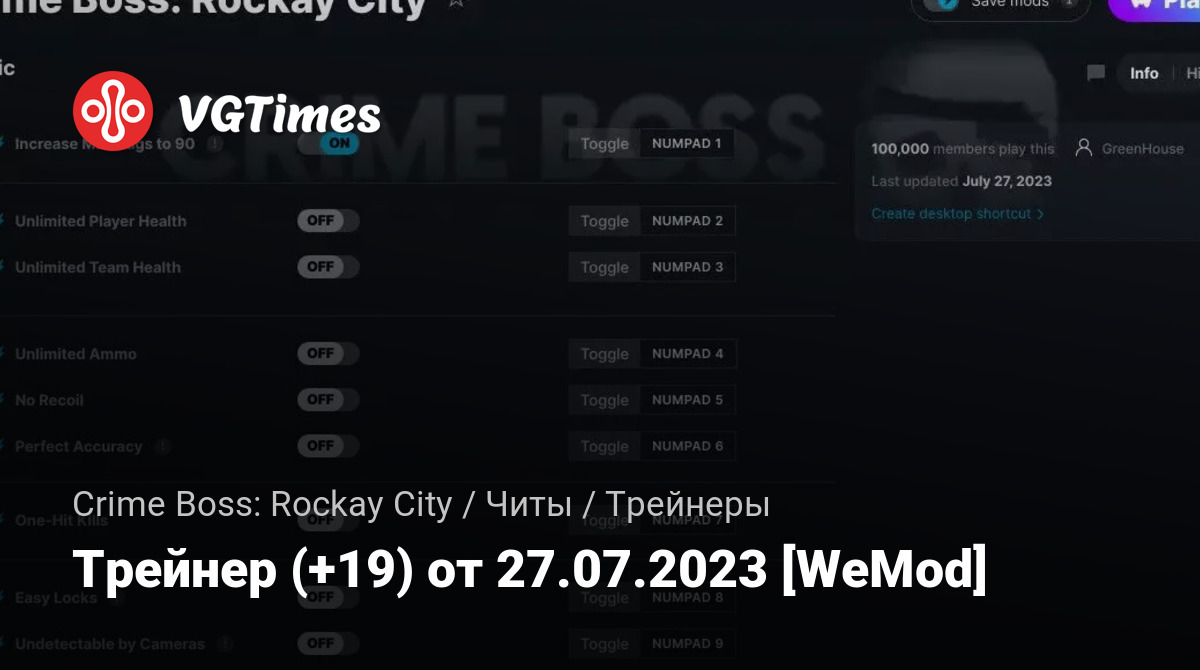 Трейнер (+19) от 27.07.2023 [WeMod]