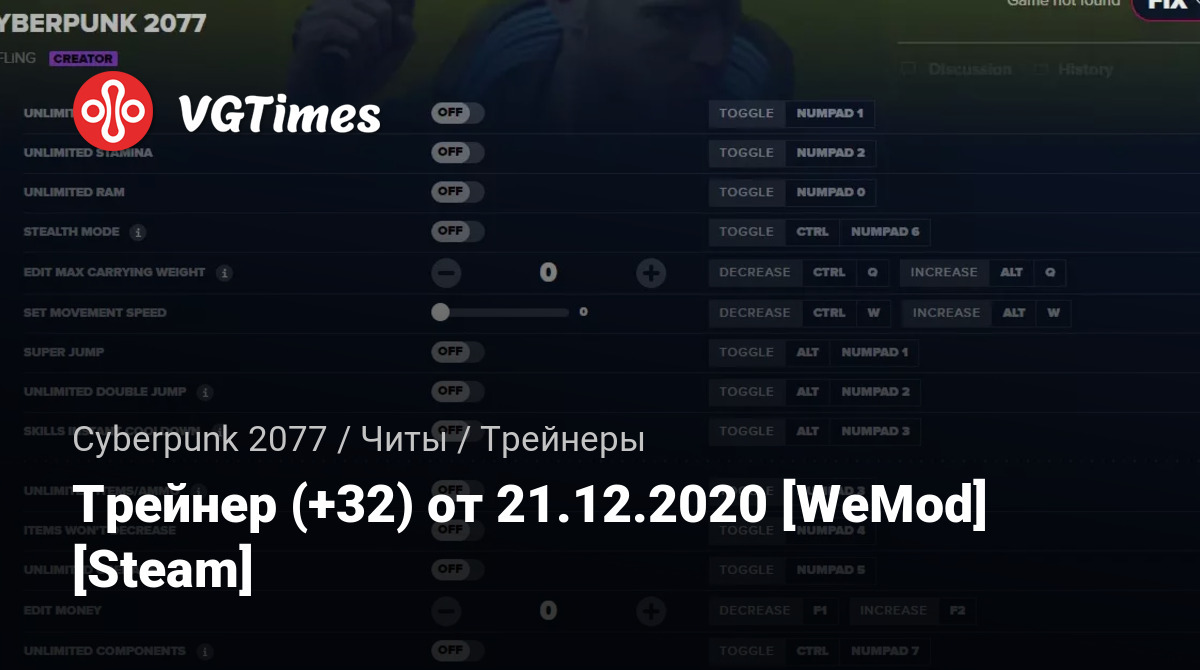 Трейнер (+32) от 21.12.2020 [WeMod] [Steam]