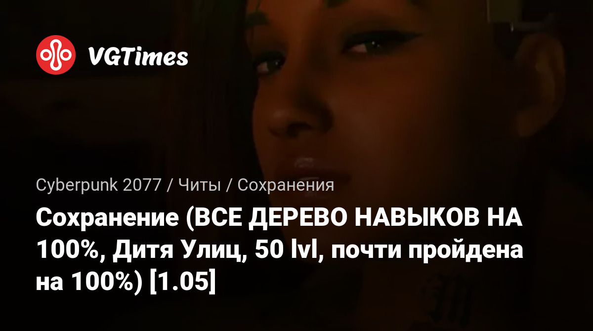 • Cyberpunk 2077 — Сохранение (ВСЕ ДЕРЕВО НАВЫКОВ НА 100%, Дитя Улиц, 50 lvl, почти пройдена на 100%) [1.05]