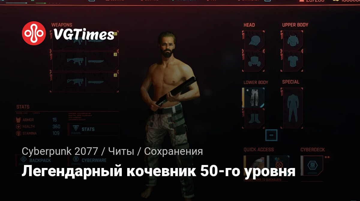 Это свежее сохранение кочевника в квесте «Пикап». Персонаж имеет 50 атрибутов и 100 очков перков. Переместите папку Nomad-50-M в C: / Users / USERNAME / Saved Games / CD Projekt Red / Cyberpunk 2077 /.
