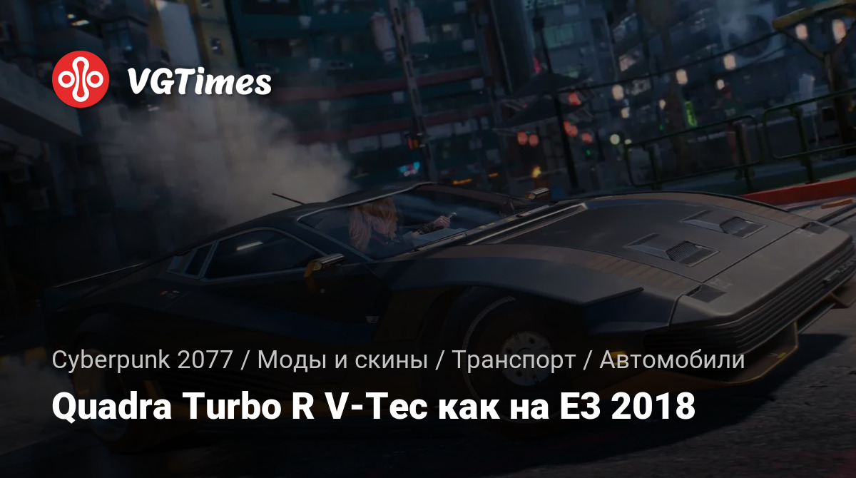 Изменяет внешний вид Quadra Turbo R V-Tec, чтобы он больше походил на то, что мы видели на E3 2018. Для установки распакуйте скачанный архив по этому пути Cyberpunk 2077 / archive / pc / patch /