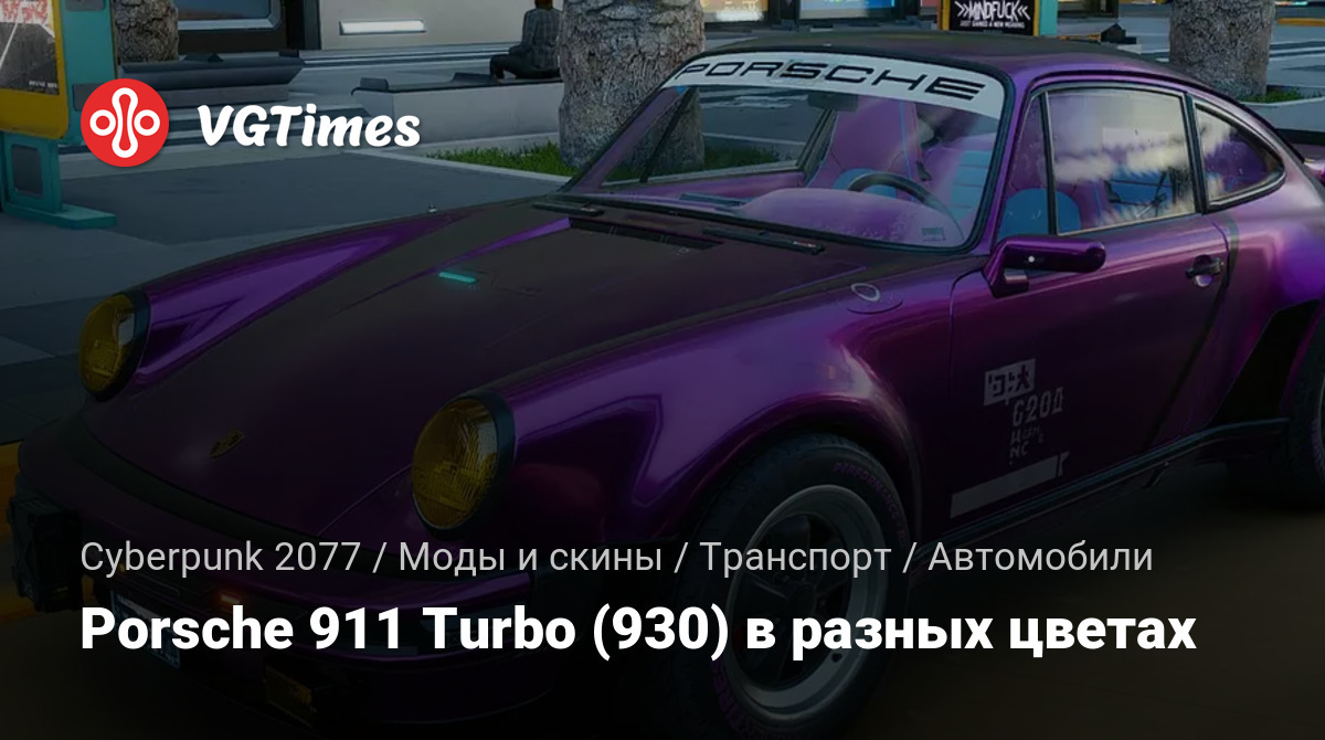 В пак входят различные варианты окраски кузова и салона Porsche 911 Turbo (930). Установка по этому пути / Cyberpunk 2077 / archive / pc / patch.