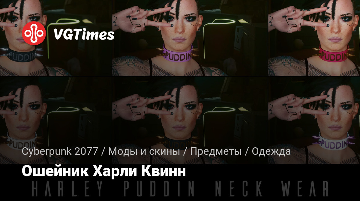 Аксессуар на шею Харли Квинн с надписью Puddin. Для Ви женского пола. Для установки распакуйте архив по этому пути /GOG/Cyberpunk 2077/archive/pc/mod.