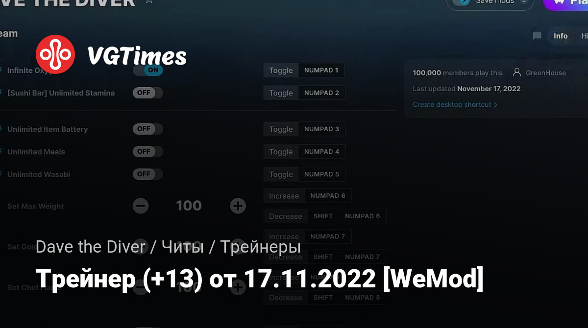 Для использования трейнера необходима установка системы WeMod (требуется онлайн подключение).