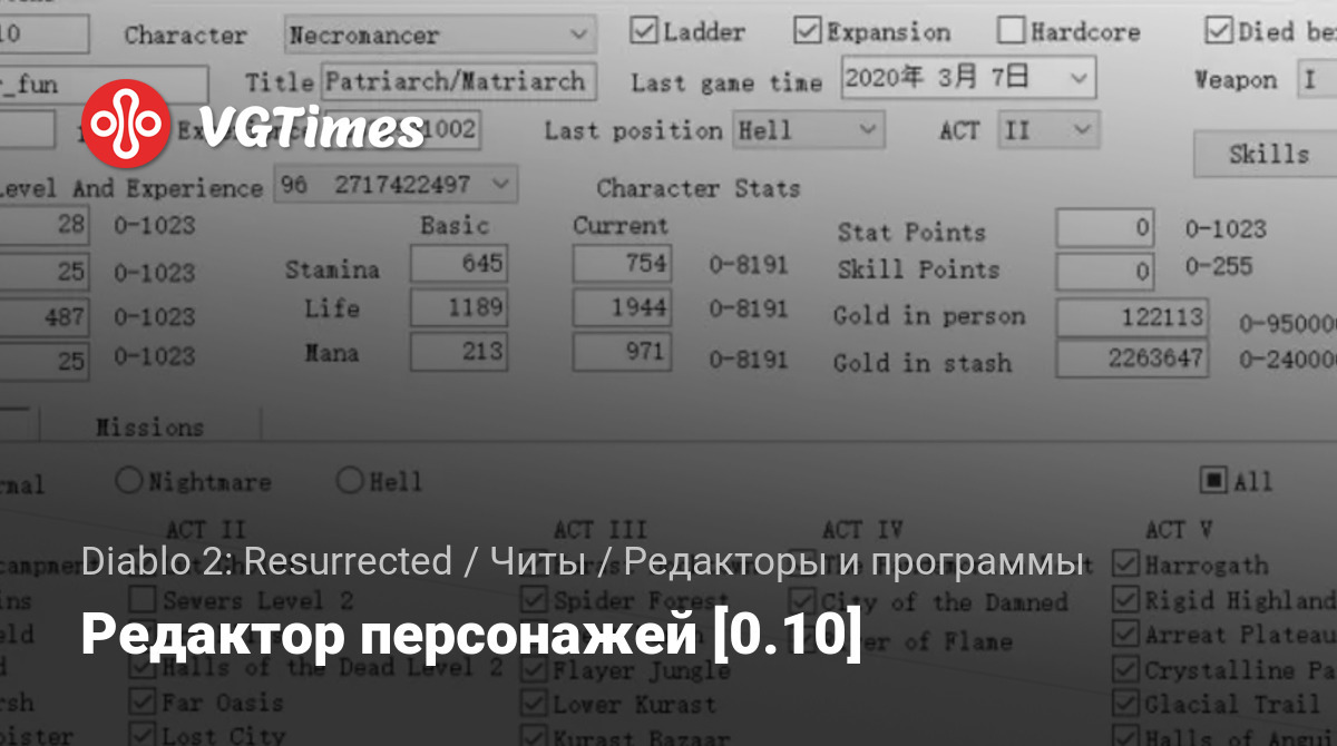 Программа для редактирования характеристик персонажа. Позволяет изменять различные параметры персонажа и редактировать инвентарь.