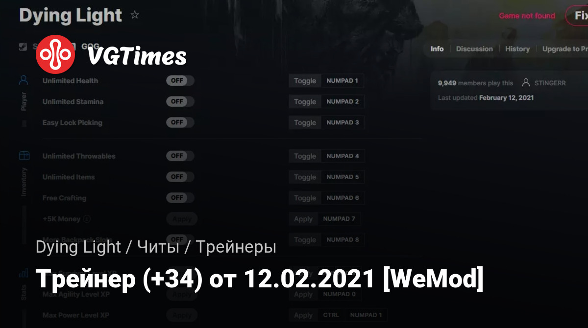 Для использования трейнера необходима установка системы WeMod (требуется онлайн подключение).