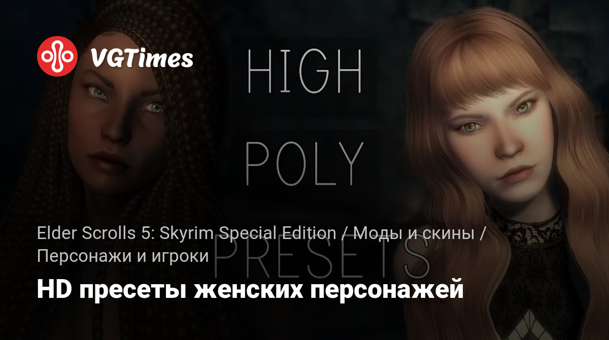 Этот мод включает в себя высокополигональные пресеты женских персонажей для следующих рас: норд, имперец, бретонец, редгард, данмер, альтмер, босмер.