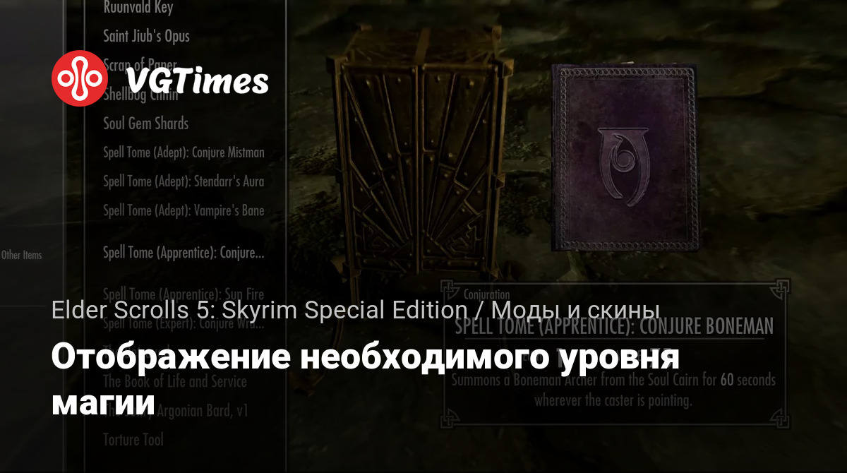 Permainan Elder Scrolls 5: Skyrim Special Edition Berkas Mod dan skin Отображение необходимого уровня магии