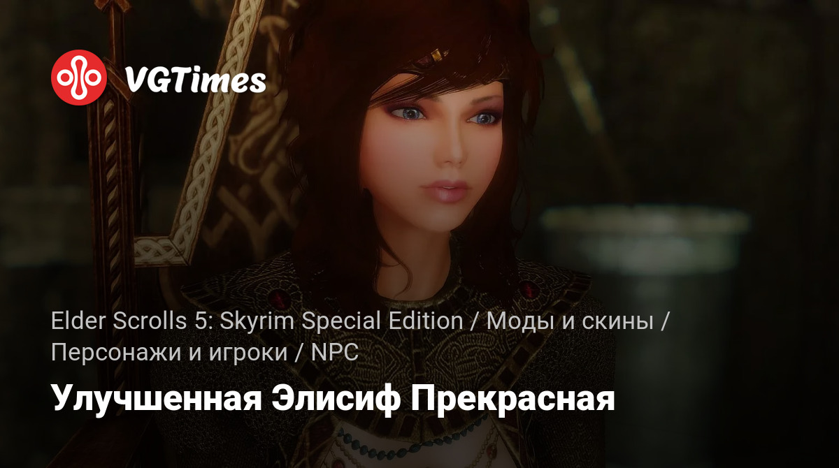 Этот мод изменяет внешний вид Элисиф Прекрасной — ярла Хаафингара. Теперь она будет выглядеть более молодой и привлекательной. Не использует ESP. Использует базовый вес 50. Использует текстуры тела и кожи персонажей игрока.