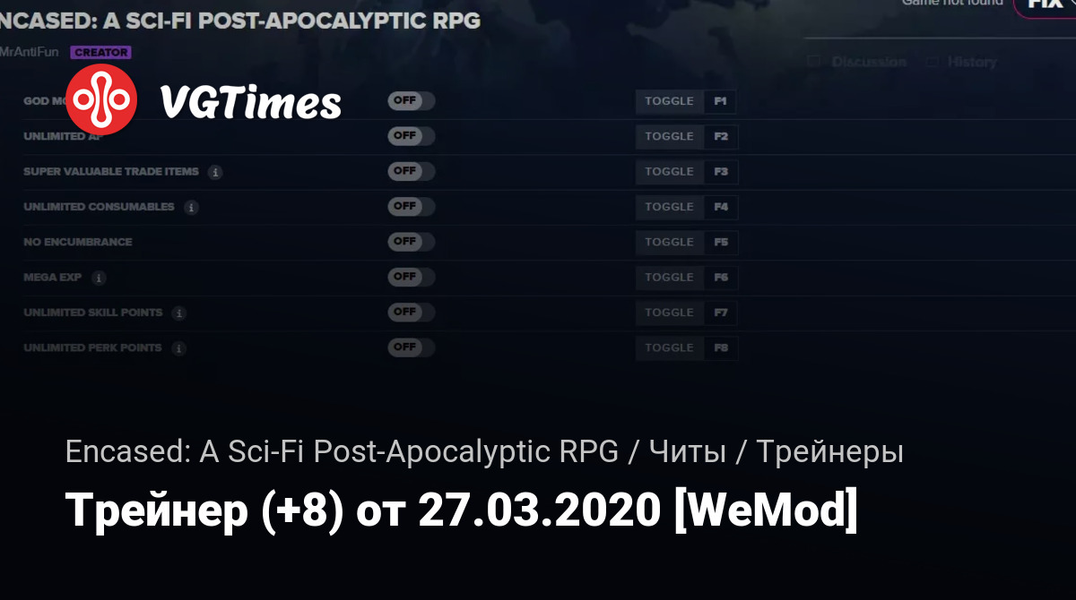 • Encased: A Sci-Fi Post-Apocalyptic RPG — Трейнер (+8) от 27.03.2020 [WeMod]