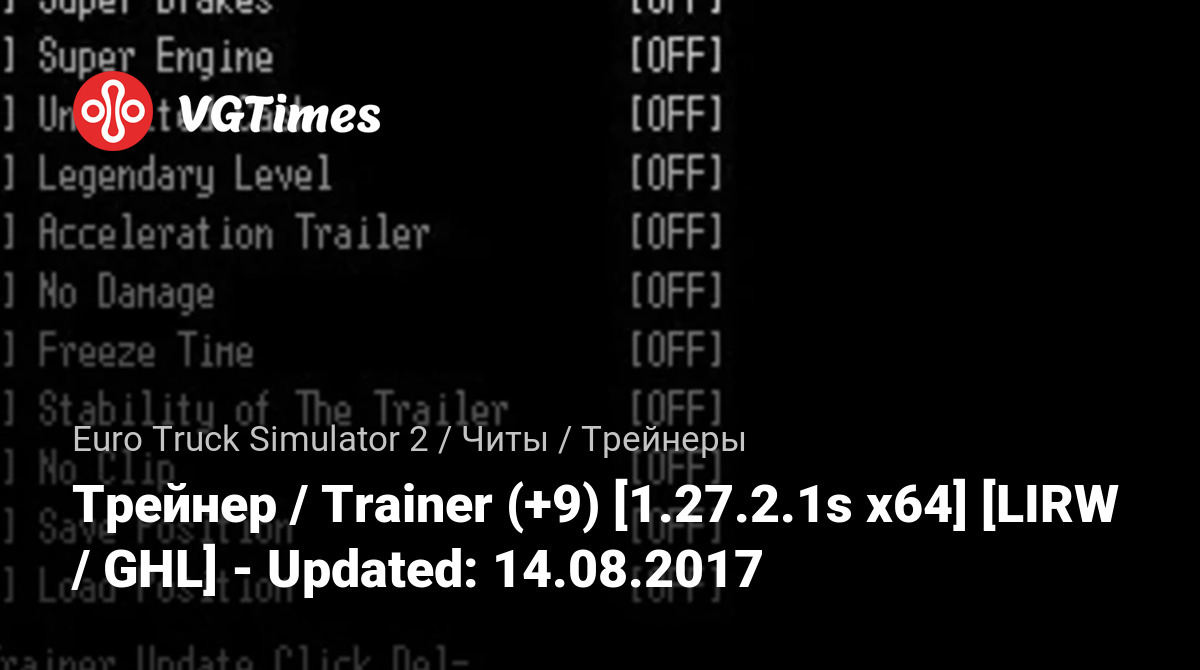 PS: Опции в трейнере теперь как включаются, так и выключаются с записью стандартного значения. А опцию заноса груза убрал, мне кажется от неё нету не каких толков.. Если надо будет — потом добавлю обратно.