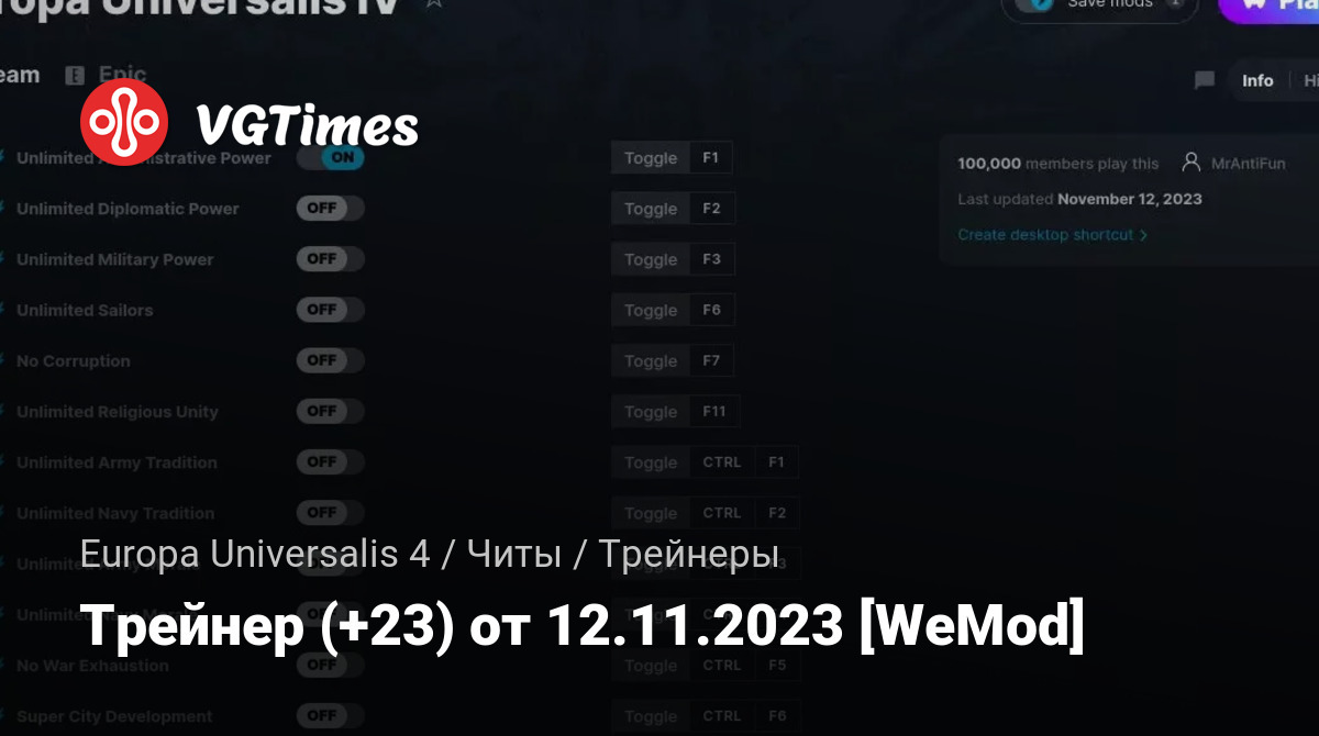 Трейнер (+23) от 12.11.2023 [WeMod]