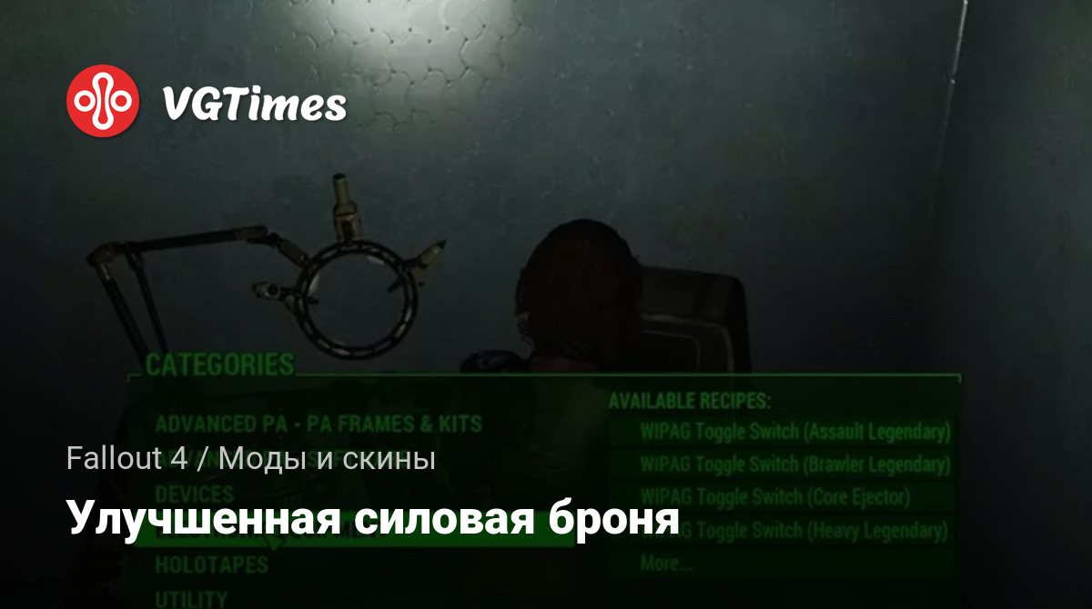 Улучшенная силовая броня с 6 уникальными специализациями, сотнями новых модов силовой брони, новыми звуковыми эффектами, горячими клавишами управления модами с помощью меню MCM.