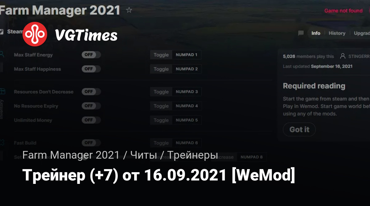 Для использования трейнера необходима установка системы WeMod (требуется онлайн подключение).