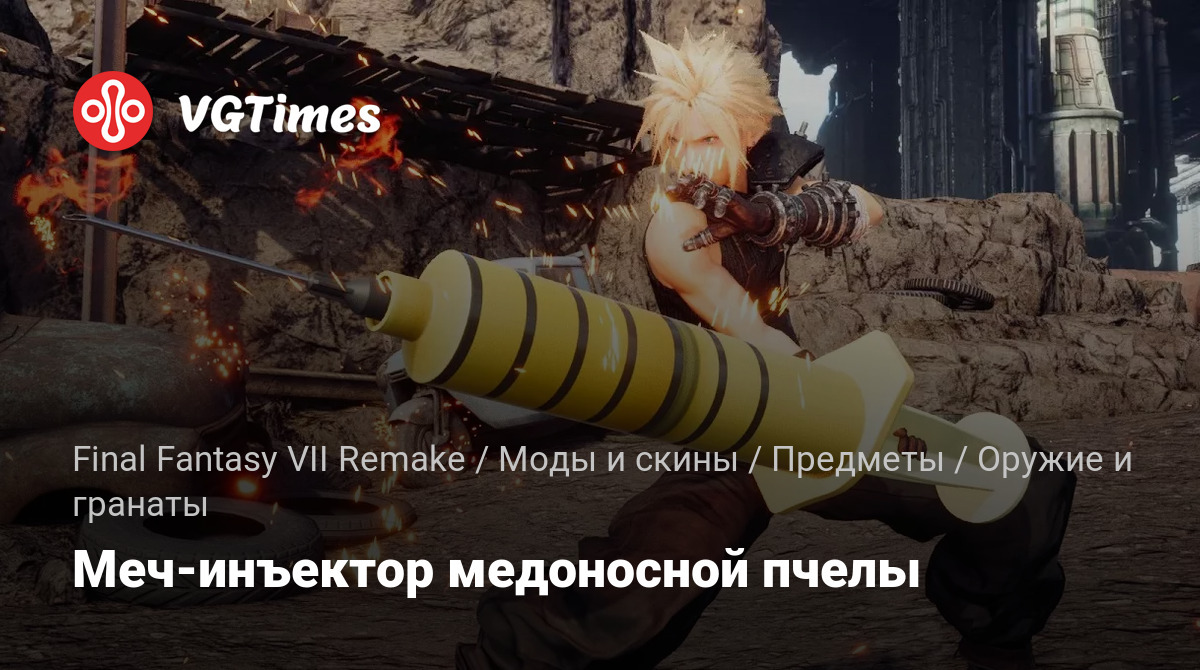 Это забавный мод заменяет Buster Sword на Honeybee Injector. Для установки распакуйте скачанный архив в папку mods.