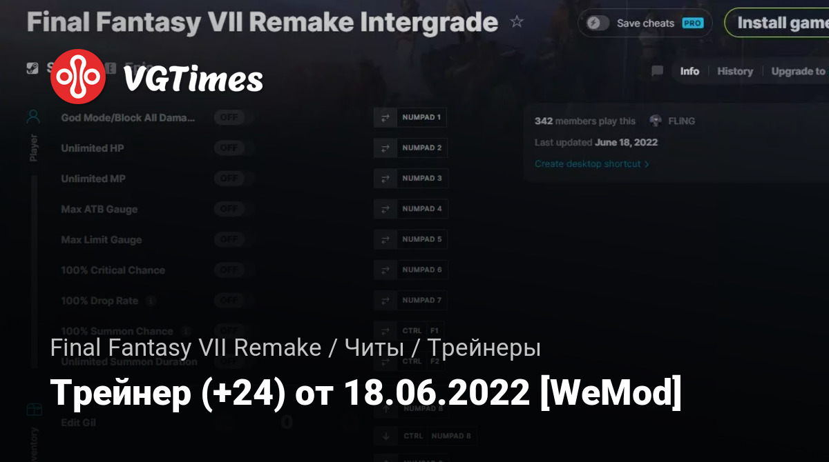 • Final Fantasy VII Remake — Трейнер (+24) от 18.06.2022 [WeMod]