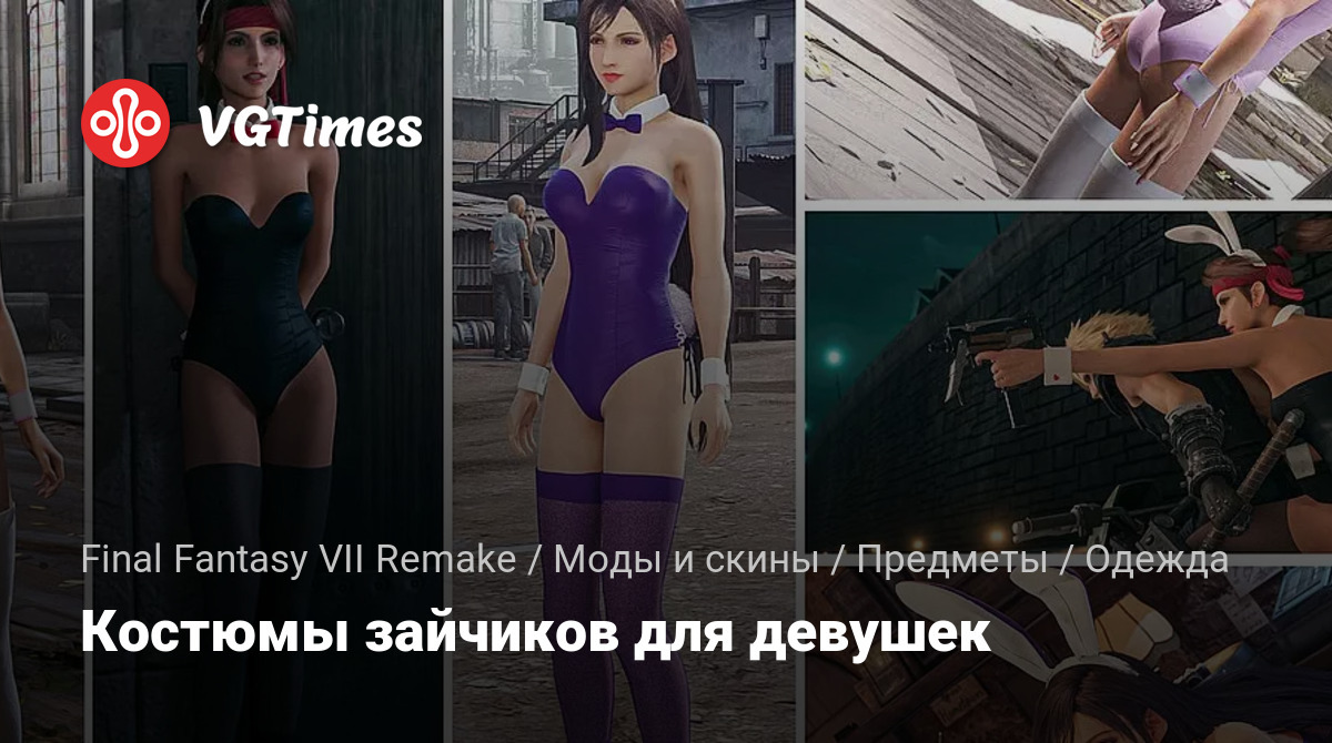 В этих модах девушки получают великолепное боди, заячьи ушки, воротник и манжеты, чулки и сапоги на высоком каблуке. Все девочки выбрали свой цвет. Помимо Тифы и Айрис, этот мод включает как игровую версию Джесси, так и мод для версии Джесси NPC. Версии с макияжем и без доступны для скачивания, рекомендуем версии с макияжем