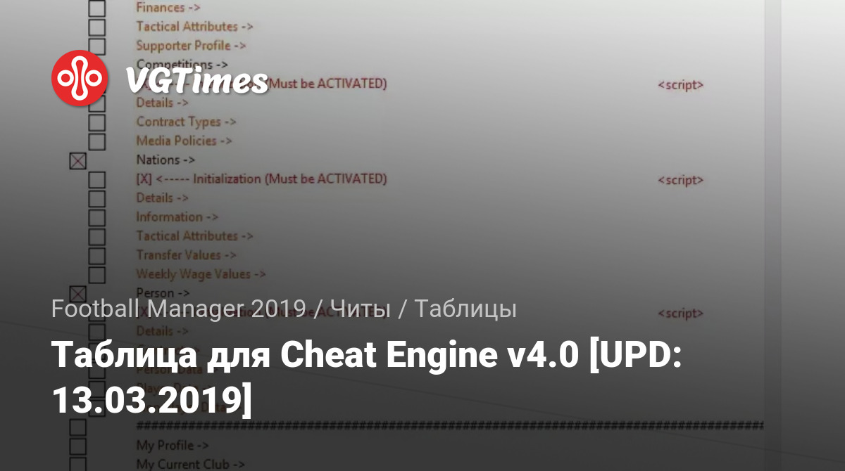 Таблица для Cheat Engine v4.0 [UPD: 13.03.2019]