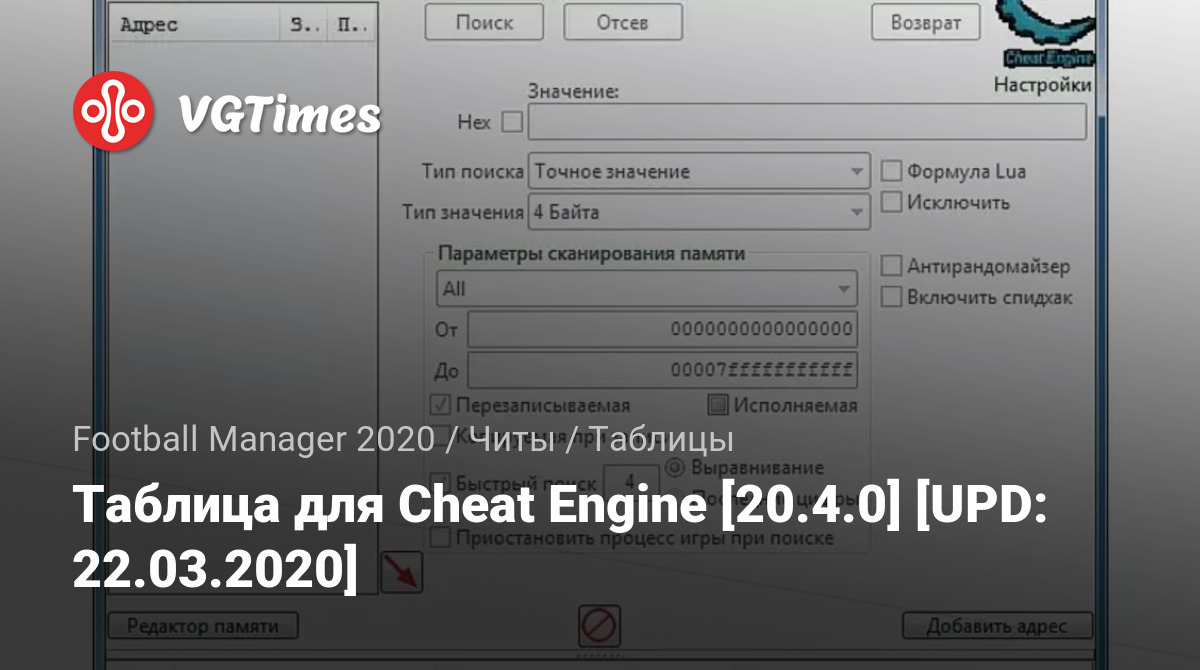 Таблица для Cheat Engine [20.4.0] [UPD: 22.03.2020]