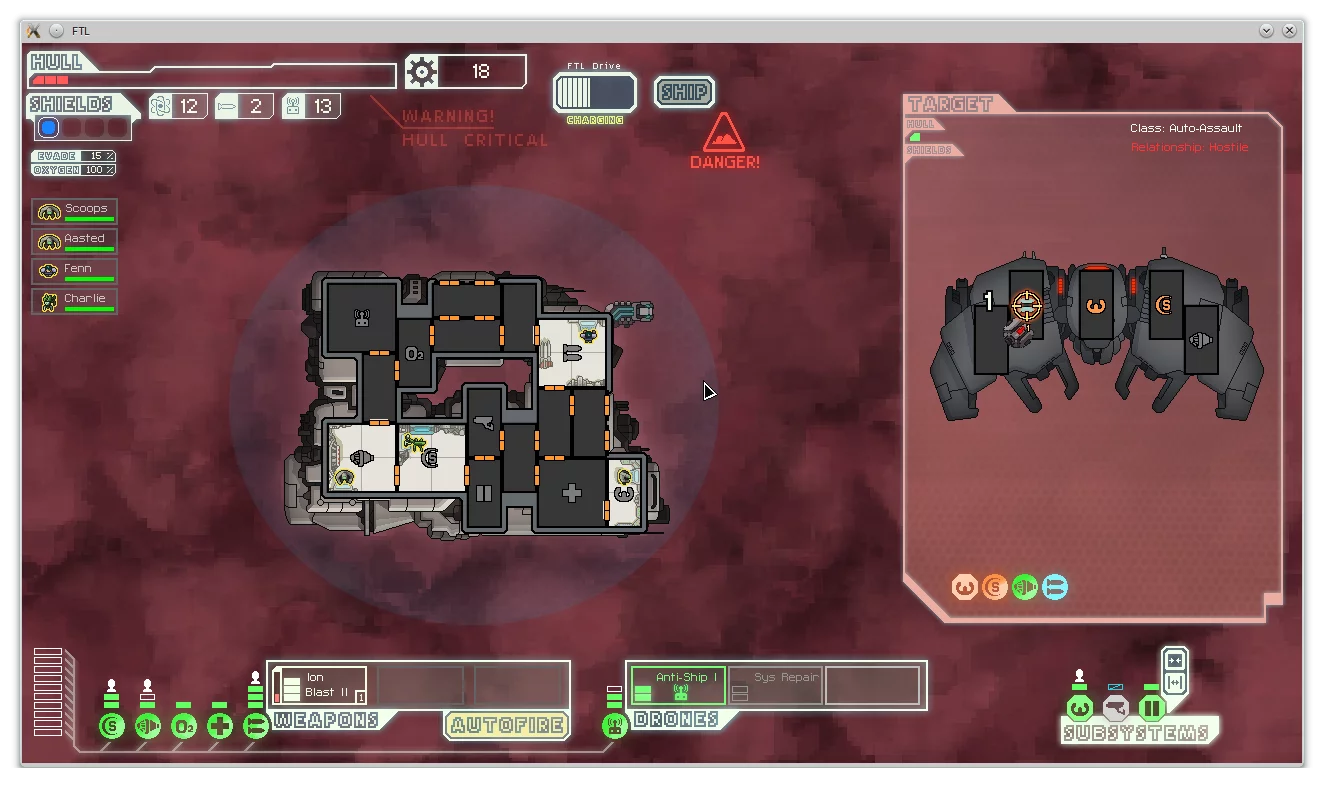 FTL: Faster Than Light — уникальный управленческий симулятор с ролевыми элементами в научно-фантастическом сеттинге. Крейсеру «Пустельга» повезло... Lebih lanjut