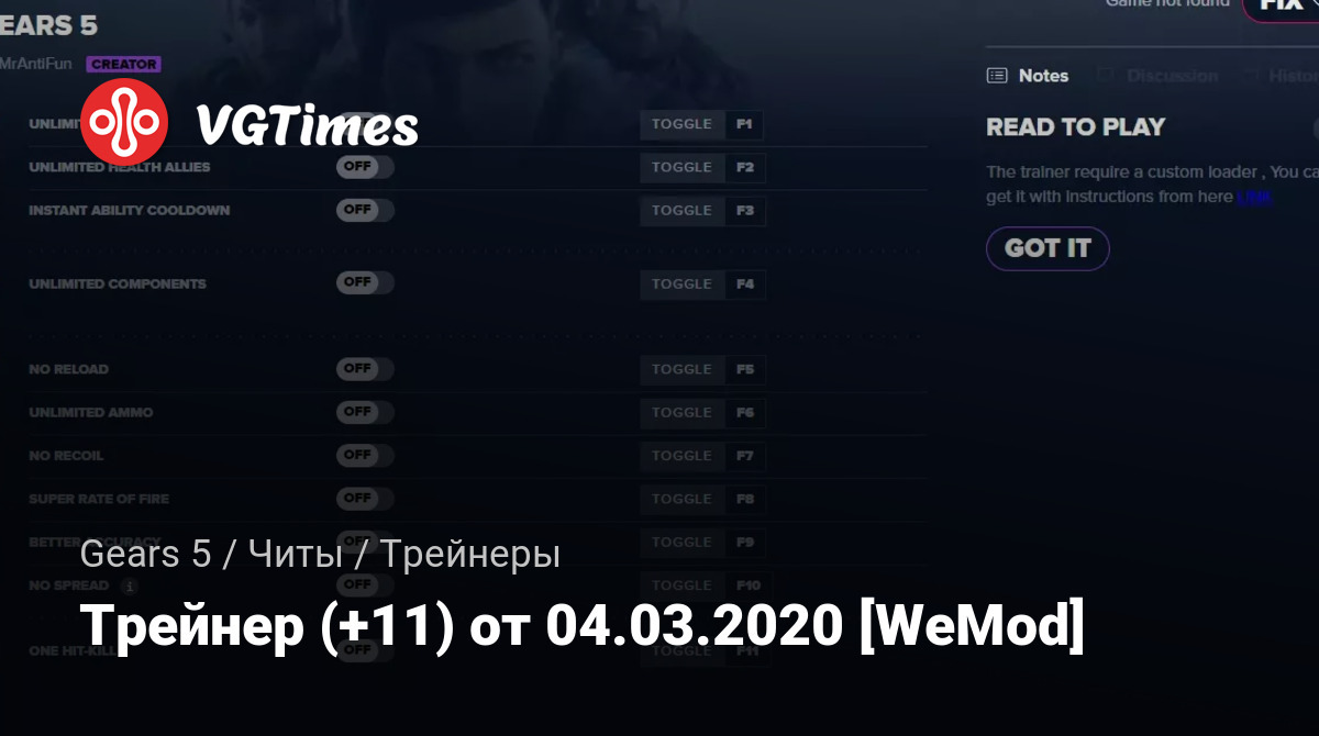 • Gears 5 — Трейнер (+11) от 04.03.2020 [WeMod]