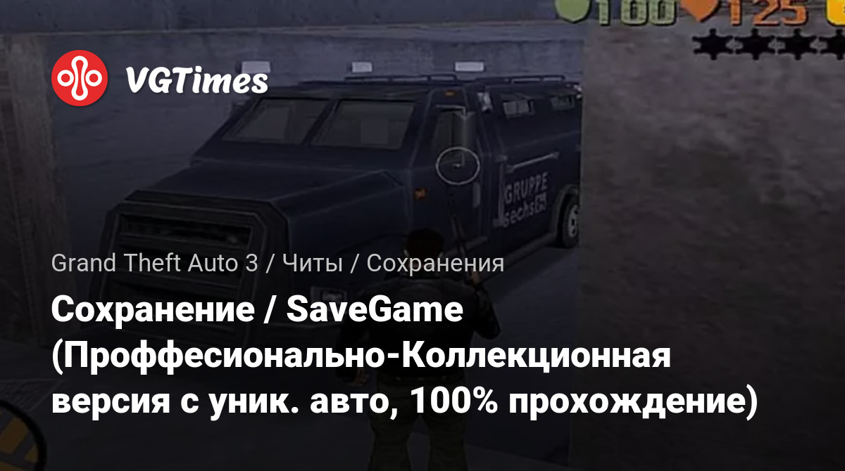 Сохранение / SaveGame (Проффесионально-Коллекционная версия с уник. авто, 100% прохождение)