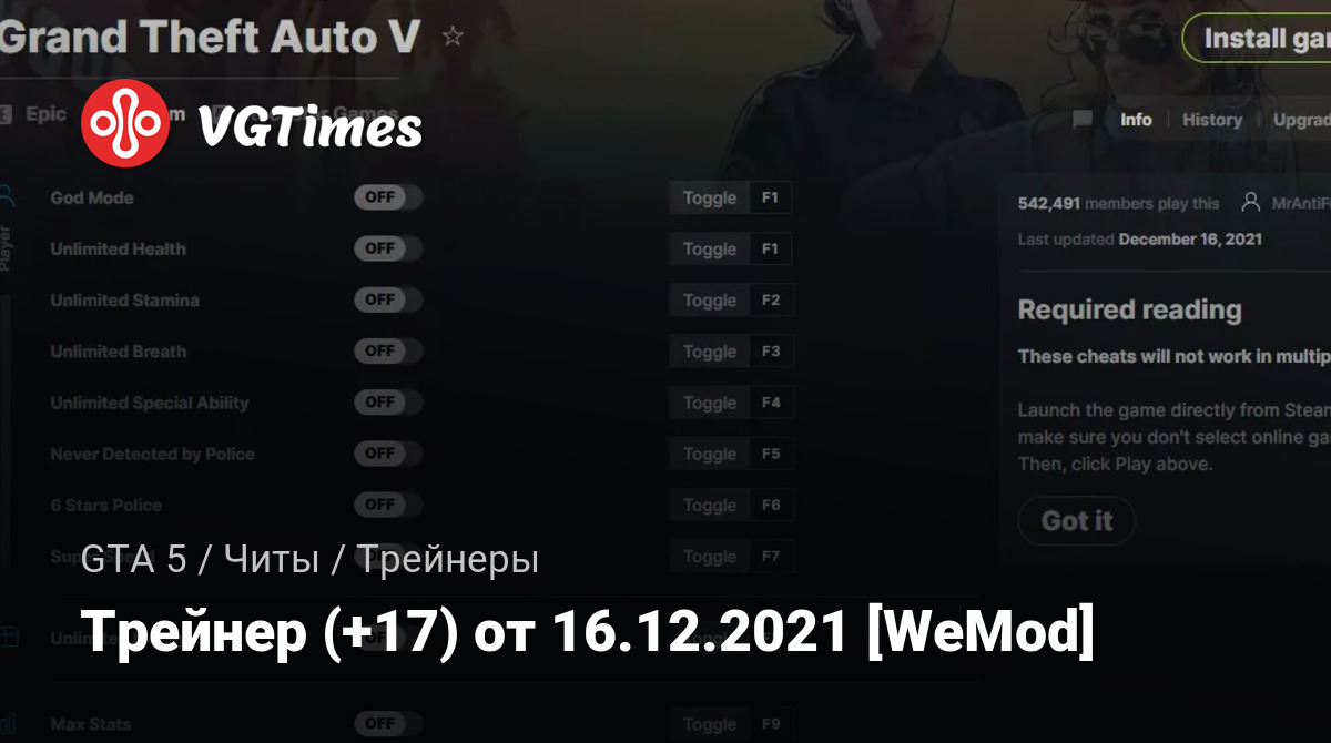 Для использования трейнера необходима установка системы WeMod (требуется онлайн подключение).