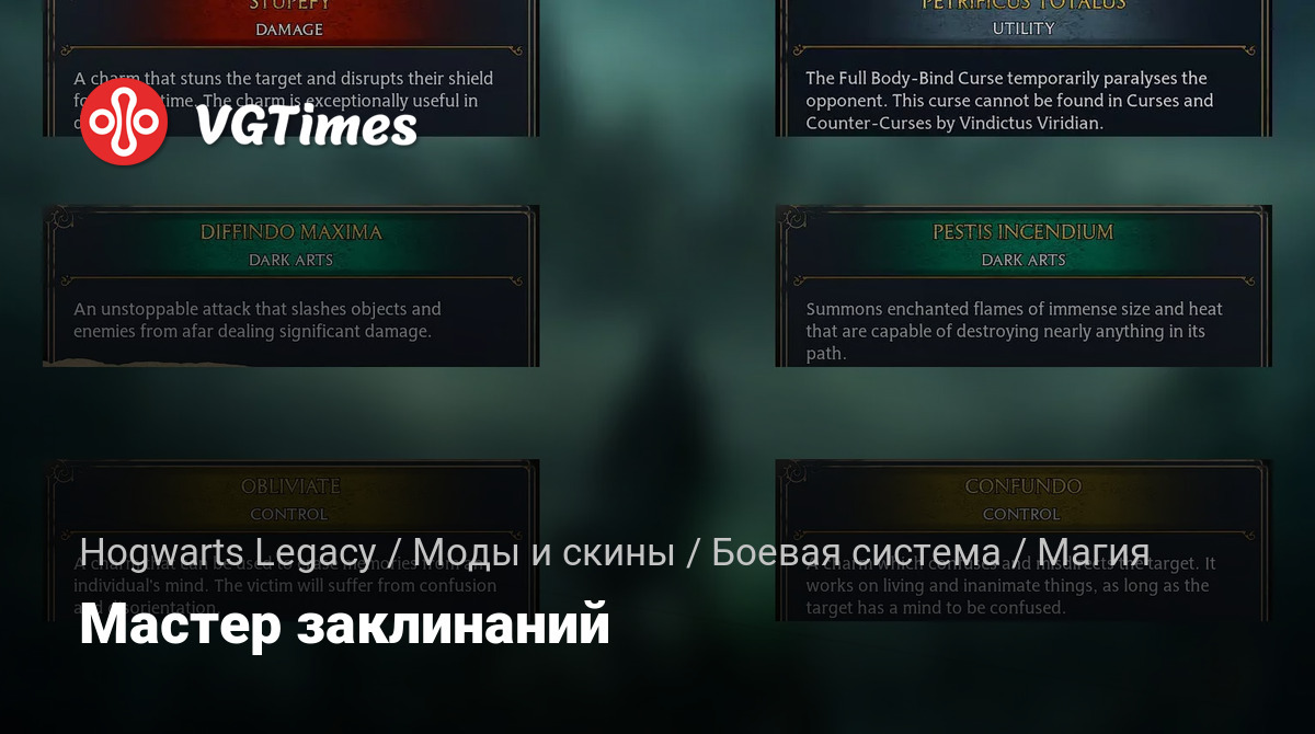 Позволяет использовать в бою следующие заклинания: Confundo, Diffindo Maxima, Obliviate, Pestis Incendium, Petrificus Totalus и Stupefy. После установки заклинания мгновенно становятся доступными и могут быть использованы и экипированы как любое другое заклинание. Они не заменяют существующие заклинания. Поддерживаются все языки.