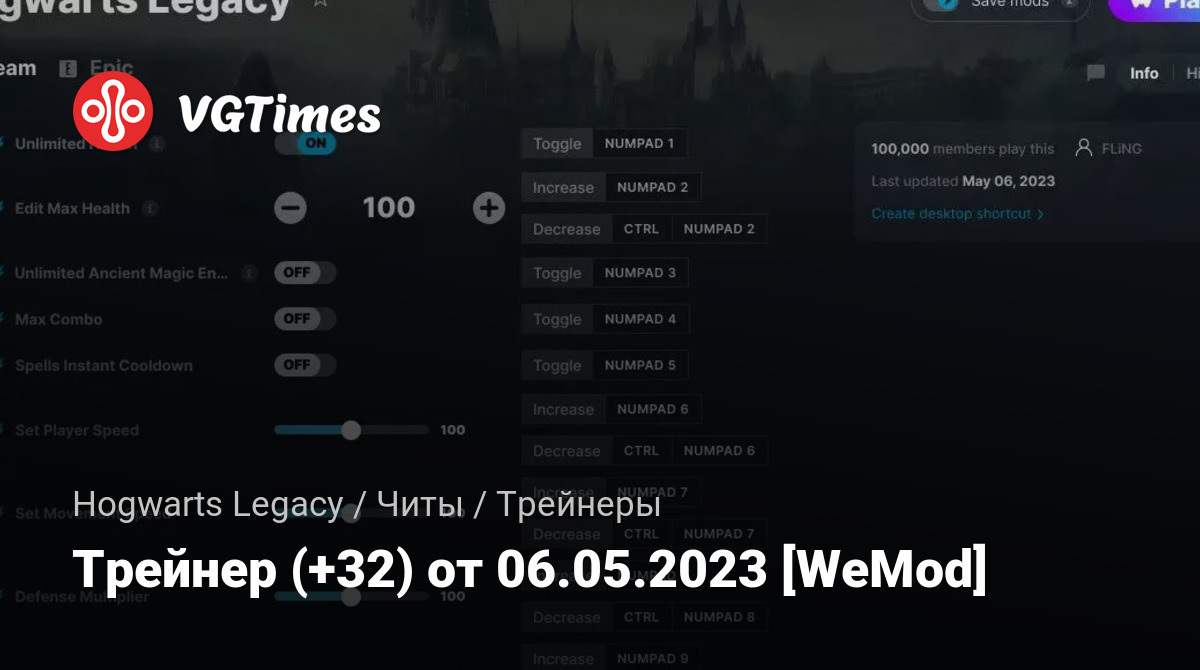 Для использования трейнера необходима установка системы WeMod (требуется онлайн подключение).