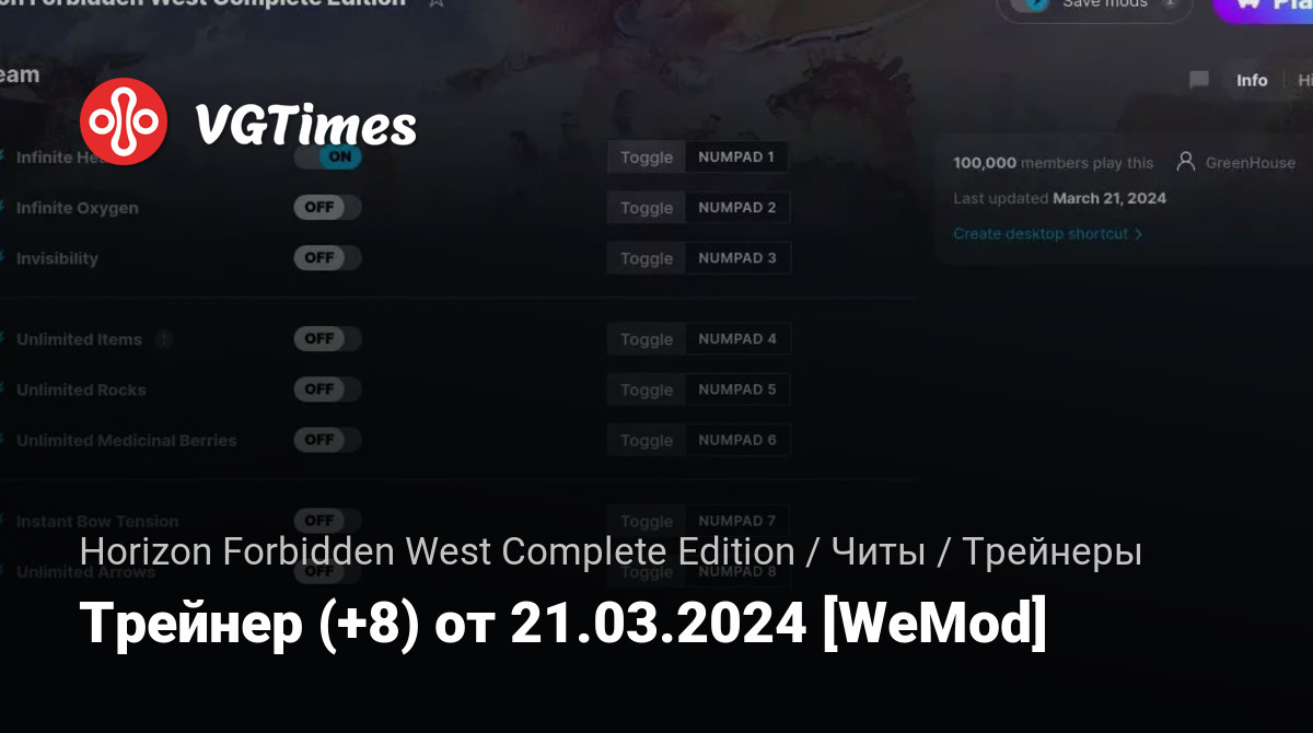 Для использования трейнера необходима установка системы WeMod (требуется онлайн подключение).