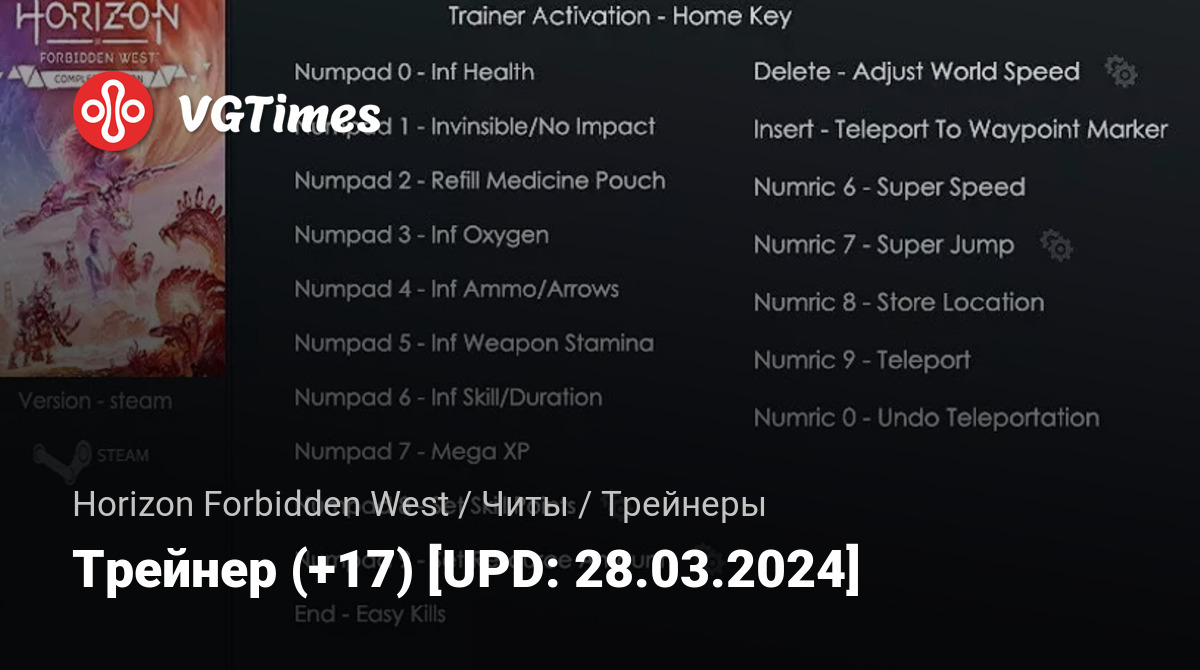 - Numpad 4 — неограниченные патроны/стрелы;