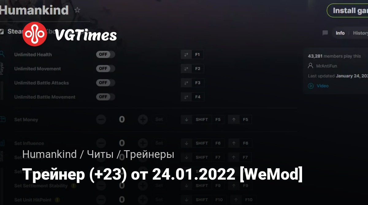 Трейнер (+23) от 24.01.2022 [WeMod]