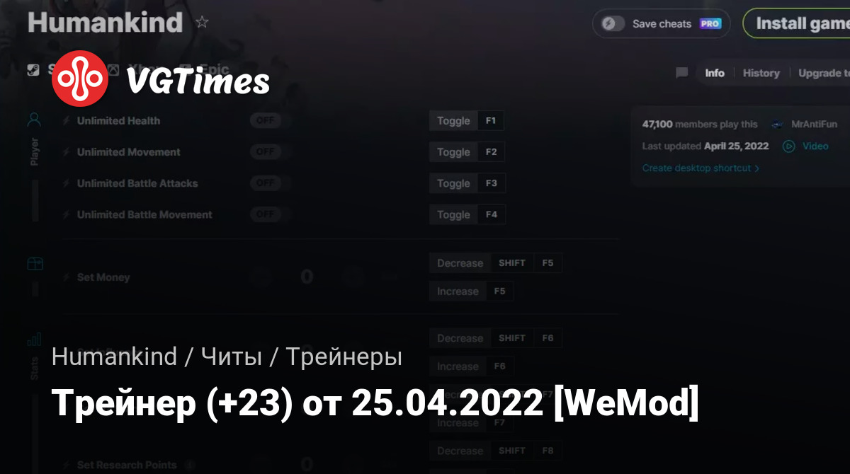 Трейнер (+23) от 25.04.2022 [WeMod]