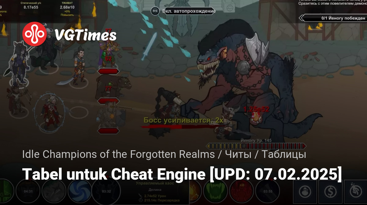 • Idle Champions of the Forgotten Realms — Tabel untuk Cheat Engine [UPD: 07.02.2025]