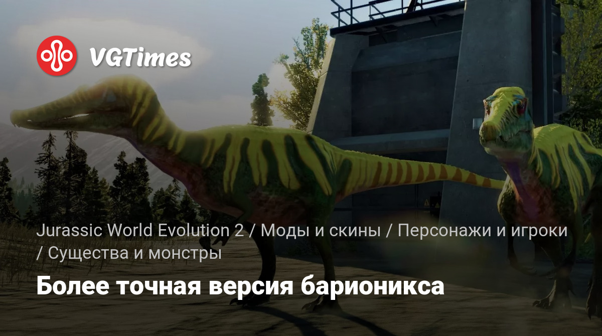Baryonxy Mod for Jurassic world evolution 2 with new skins and improved model.